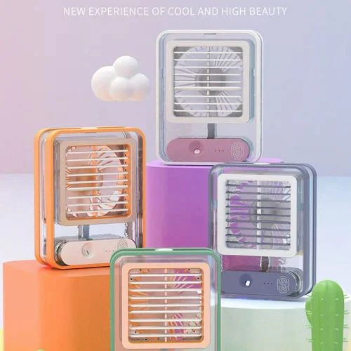 Stay cool and refreshed anywhere with this Portable Mini Air Cooler Fan. Designed with a transparent spray system, LED ambient light, and powerful wind circulation, this compact fan is perfect for home, office, or travel.