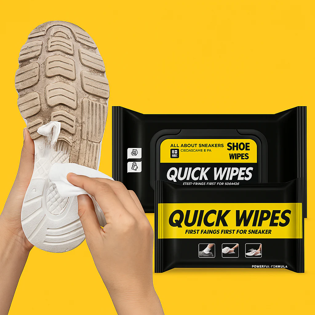 Keep your sneakers looking brand new with Quick Wipes Shoe Cleaning Wet Wipes. Designed for convenience, these pre-moistened wipes remove dirt, stains, and scuffs instantly, leaving your shoes fresh and spotless. Perfect for white sneakers, leather shoes, sports shoes, and casual footwear, they are safe, portable, and ready to use anytime, anywhere.